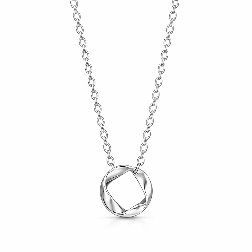 An endless curve sculpted by unseen winds, this pendant captures the quiet geometry of infinity.